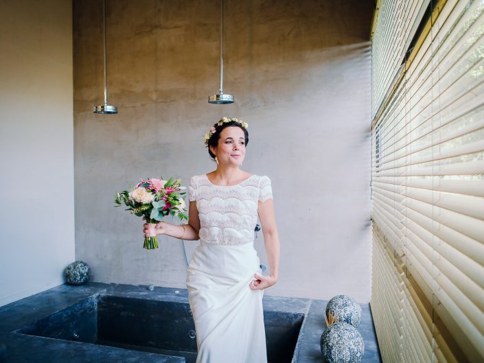 beautiful bride with flower crown by Poppy Figue best florist in Toulouse