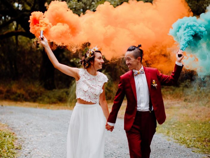 photo de mariage avec fumigènes - photographe mariage toulouse