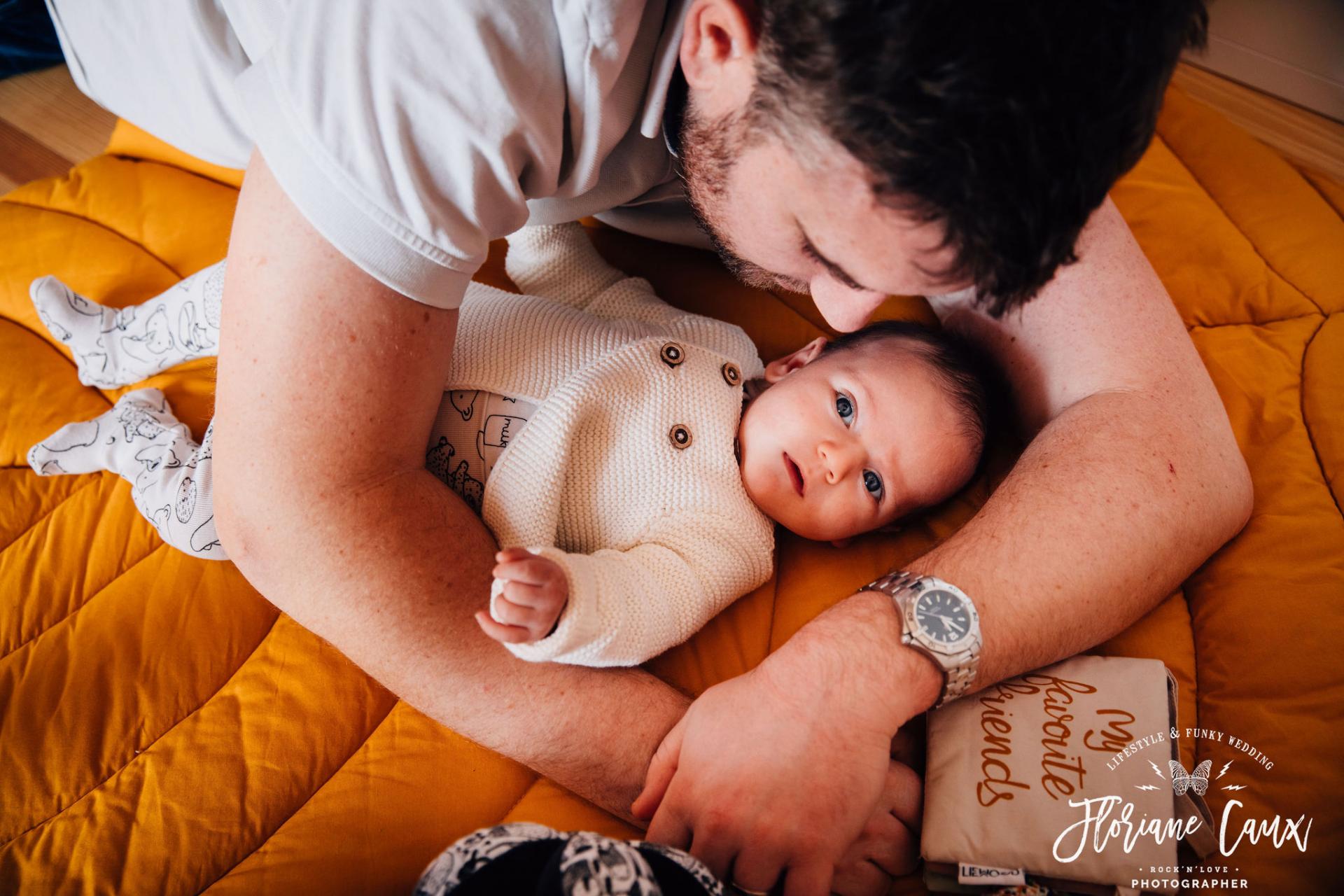 Lorsque vous vous offrez une séance photo naissance, vous offrez là les premières photos de famille à votre enfant. Vos premières photos qui débutent l’histoire de sa vie, de qui il est et celui qu’il deviendra. Depuis que je suis Maman moi aussi, j’aborde vos séances bébé lifestyle d’une manière différente. J’ai toujours respecté le rythme de vos bébés mais maintenant d’autant plus. C’est important aussi que les parents soient dans un bon mood, que tout le monde soit serein et que la séance se déroule naturellement. C’est finalement votre petit bout qui va laisser se dessiner la séance photo. S’il est plus apaisé après une tétée, alors on commencera par de belles photos de l’allaitement que vous vivez avec lui. S’il est plus calme après un bon bain, alors on capturera ce moment ensemble. S’il faut passer 40 minutes à le bercer ou à la porter en porte-bébé ou en écharpe pour le soulager… on le fera. N’oubliez pas que cette séance photo est un cadeau précieux que vous lui faites. Se souvenir des premiers gestes, des premiers instants avec leurs difficultés, leur tendresse, la fatigue et cette joie immense mêlées. Se souvenir de l’entièreté de ces premiers instants de vie à 3.