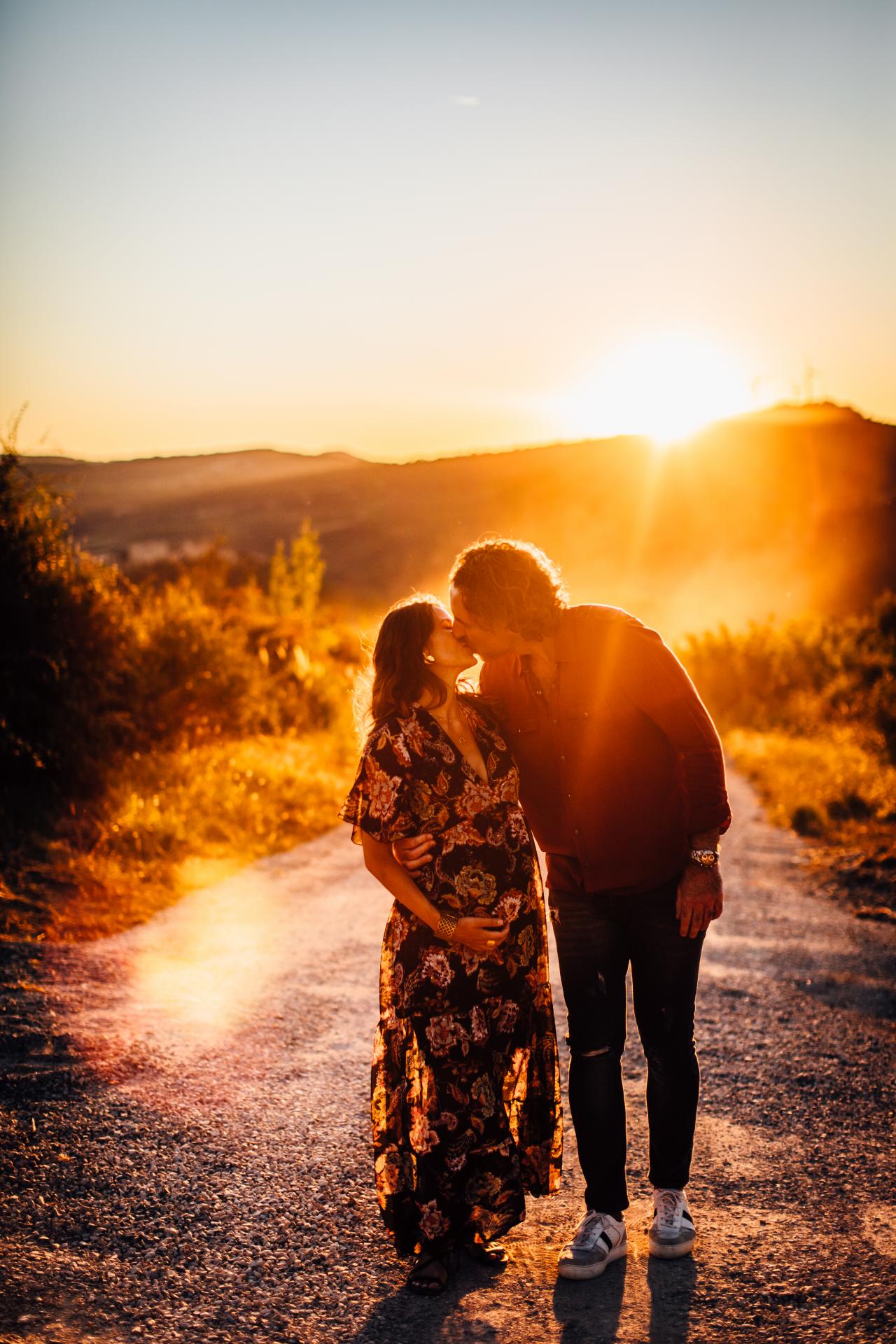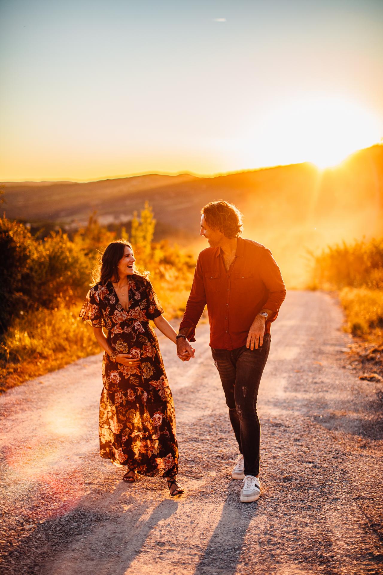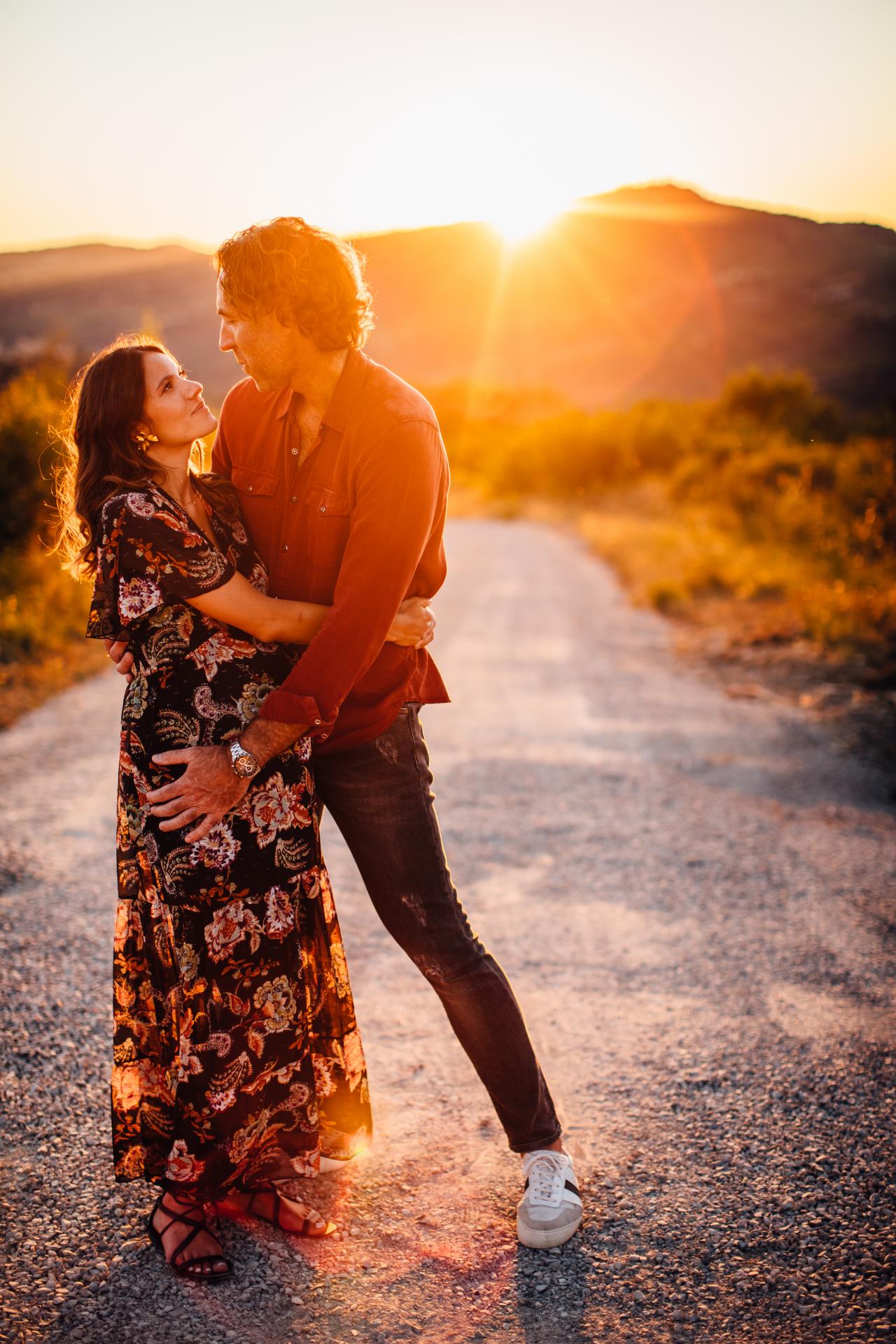 Pour cette séance photo grossesse à Limoux, ils avaient envie à la fois d’un moment intimiste chez eux et à la fois d’une session dans la nature à la Golden Hour. Pour l’occasion, ils ont trouvé des spots incroyables aux alentours : des vignes, un champs de tournesols et un point de vue sur Bugarach et le St Barth assez dingue ! Le département de l’Aude est vraiment riche en paysages et Limoux offre des ambiances très différentes les unes des autres.