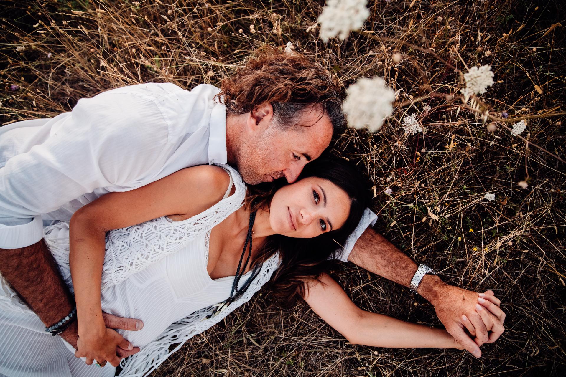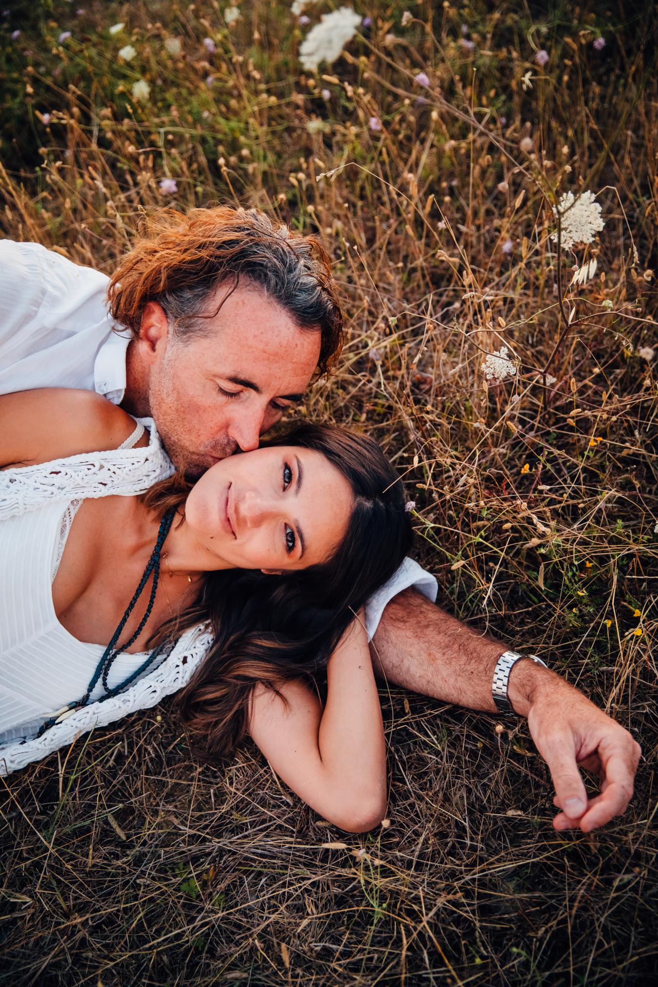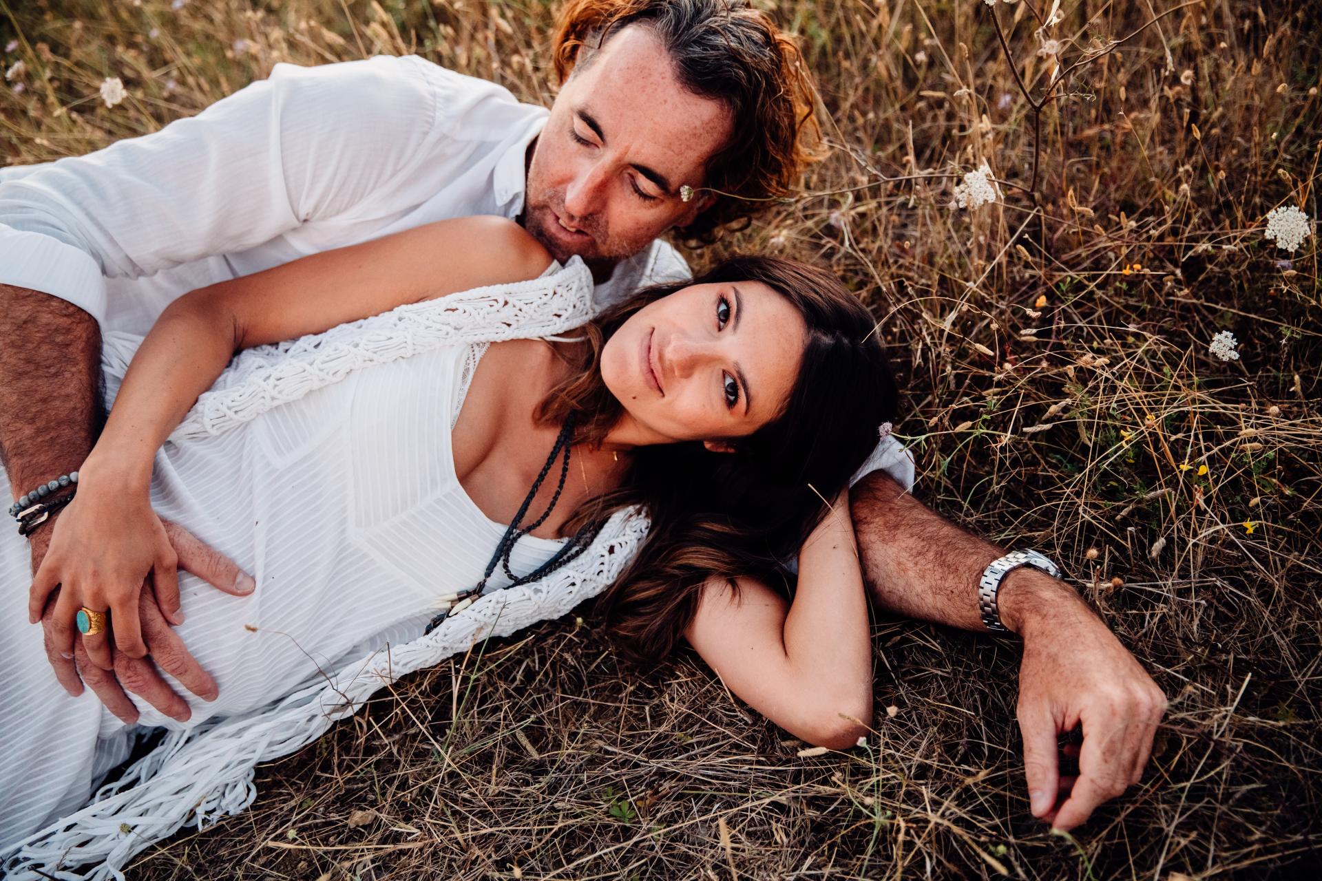 Pour cette séance photo grossesse à Limoux, ils avaient envie à la fois d’un moment intimiste chez eux et à la fois d’une session dans la nature à la Golden Hour. Pour l’occasion, ils ont trouvé des spots incroyables aux alentours : des vignes, un champs de tournesols et un point de vue sur Bugarach et le St Barth assez dingue ! Le département de l’Aude est vraiment riche en paysages et Limoux offre des ambiances très différentes les unes des autres.